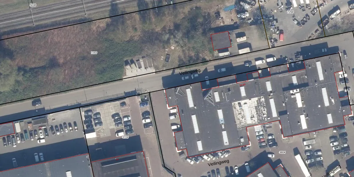 Het perceel waarop Veilingweg 60 staat heeft een oppervlakte van 1,3 ha. Dit is een zeer groot perceel. De perceeloppervlakte wordt geregistreerd door het Kadaster. Gedetailleerde informatie over de maten van dit perceel kunt u vinden in het rapport Kadastrale kaart met maatvoering van Veilingweg 60.