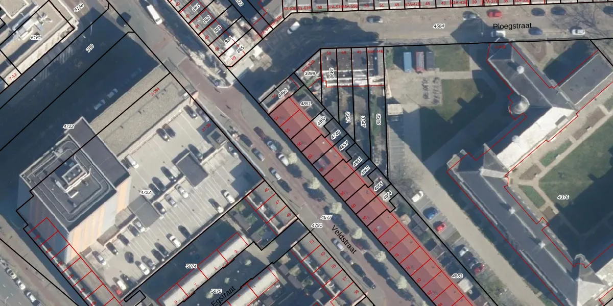 Gebruik de zoekbalk of klik op een perceel voor informatie over de adressen binnen dit perceel.