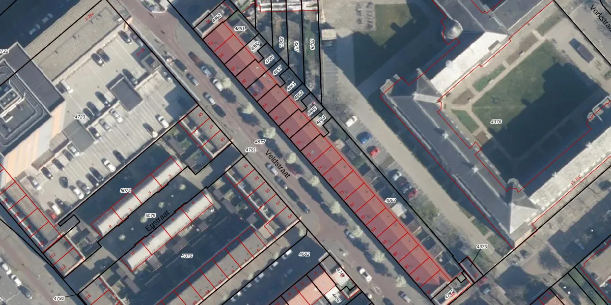 Veldstraat 72 is gelegen op kadastraal perceel CLS00F4863. Deze kadastrale aanduiding is uniek en wordt gebruikt door het Kadaster om eigendomsrechten en andere zakelijke rechten vast te leggen. Het perceel maakt onderdeel uit van de kadastrale gemeente Charlois.