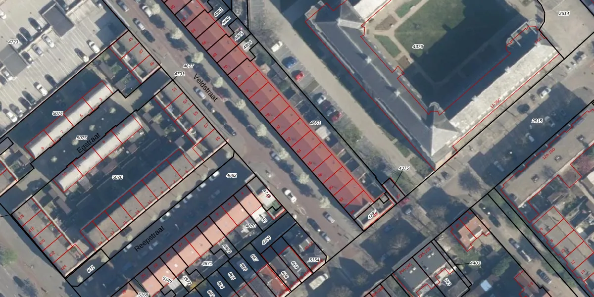 Veldstraat 84 is gelegen op kadastraal perceel CLS00F4863. Deze kadastrale aanduiding is uniek en wordt gebruikt door het Kadaster om eigendomsrechten en andere zakelijke rechten vast te leggen. Het perceel maakt onderdeel uit van de kadastrale gemeente Charlois.