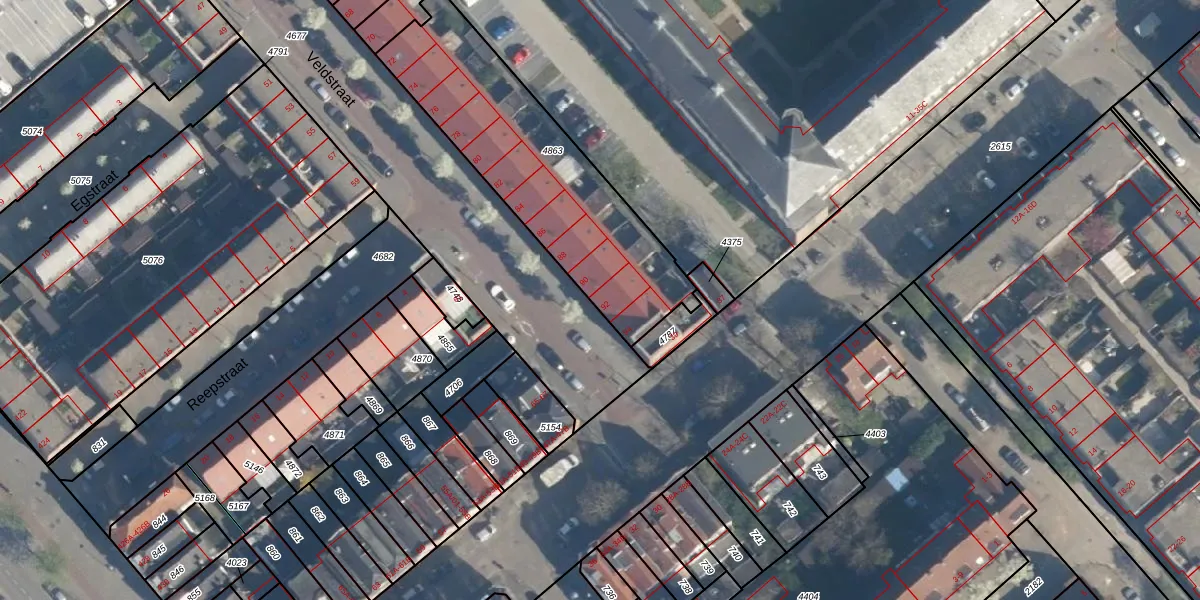 Veldstraat 92 is gelegen op kadastraal perceel CLS00F4863. Deze kadastrale aanduiding is uniek en wordt gebruikt door het Kadaster om eigendomsrechten en andere zakelijke rechten vast te leggen. Het perceel maakt onderdeel uit van de kadastrale gemeente Charlois.