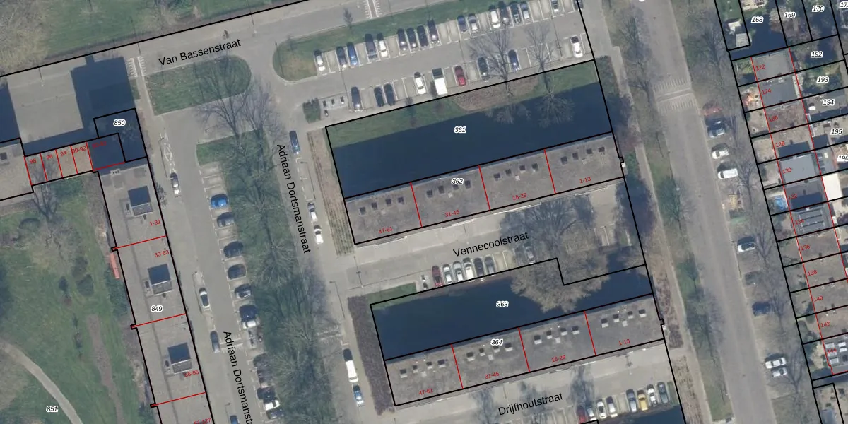Het perceel waarop Vennecoolstraat 45 staat heeft een oppervlakte van 728 m². Dit is een groot perceel. De perceeloppervlakte wordt geregistreerd door het Kadaster. Gedetailleerde informatie over de maten van dit perceel kunt u vinden in het rapport Kadastrale kaart met maatvoering van Vennecoolstraat 45.