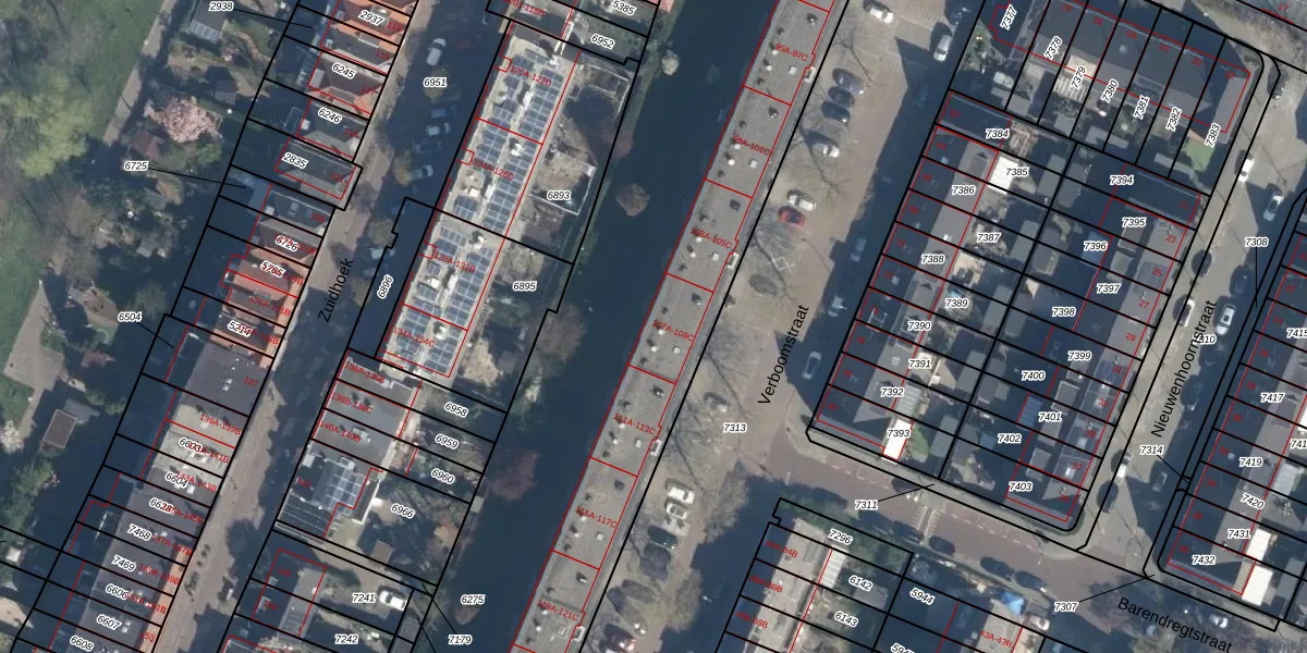 Het perceel waarop Verboomstraat 107-B staat heeft een oppervlakte van 5033 m². Dit is een zeer groot perceel. De perceeloppervlakte wordt geregistreerd door het Kadaster. Gedetailleerde informatie over de maten van dit perceel kunt u vinden in het rapport Kadastrale kaart met maatvoering van Verboomstraat 107-B.