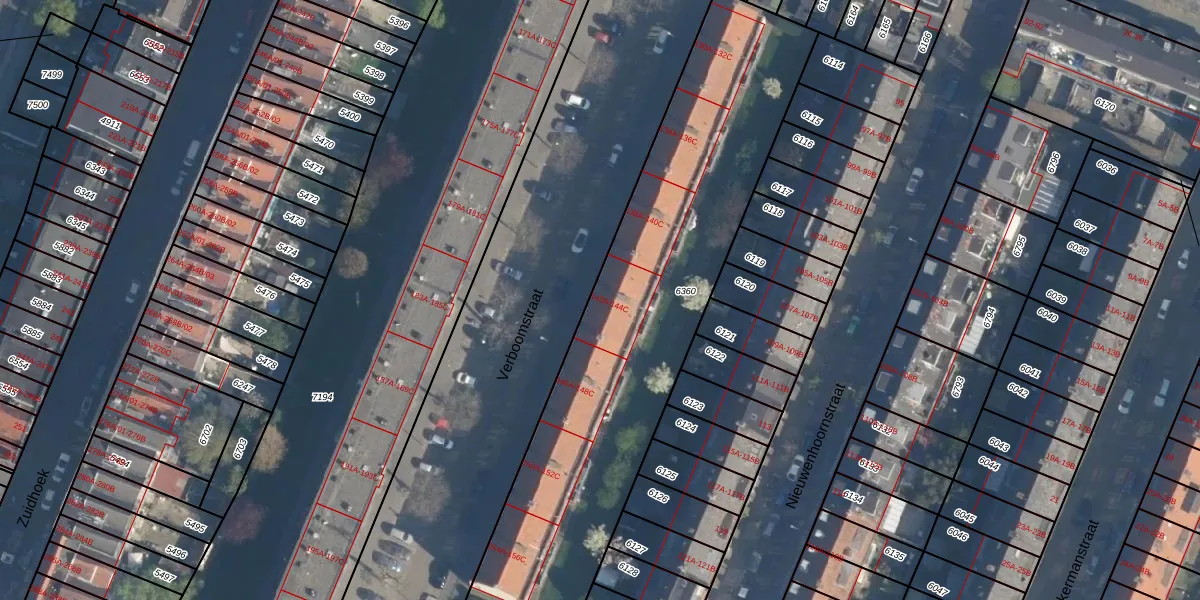 Verboomstraat 142-C is gelegen op kadastraal perceel CLS00B6360. Deze kadastrale aanduiding is uniek en wordt gebruikt door het Kadaster om eigendomsrechten en andere zakelijke rechten vast te leggen. Het perceel maakt onderdeel uit van de kadastrale gemeente Charlois.