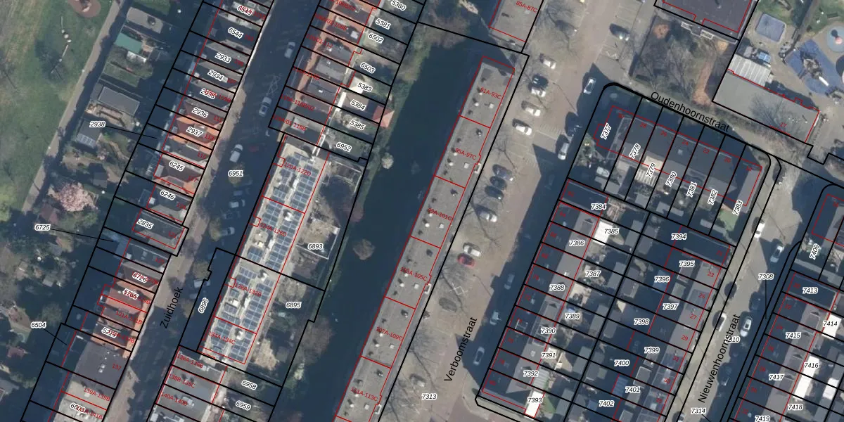Het perceel waarop Verboomstraat 99-B staat heeft een oppervlakte van 5033 m². Dit is een zeer groot perceel. De perceeloppervlakte wordt geregistreerd door het Kadaster. Gedetailleerde informatie over de maten van dit perceel kunt u vinden in het rapport Kadastrale kaart met maatvoering van Verboomstraat 99-B.