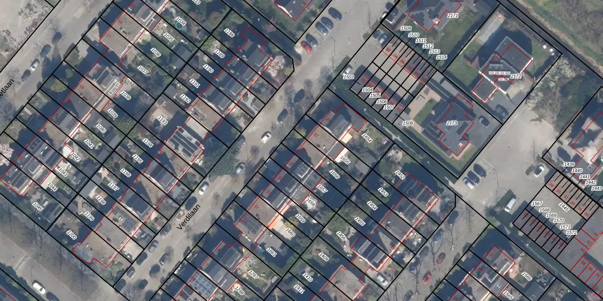 Het perceel waarop Verdilaan 25 staat heeft een oppervlakte van 181 m². Dit is een middelgroot perceel. De perceeloppervlakte wordt geregistreerd door het Kadaster. Gedetailleerde informatie over de maten van dit perceel kunt u vinden in het rapport Kadastrale kaart met maatvoering van Verdilaan 25.