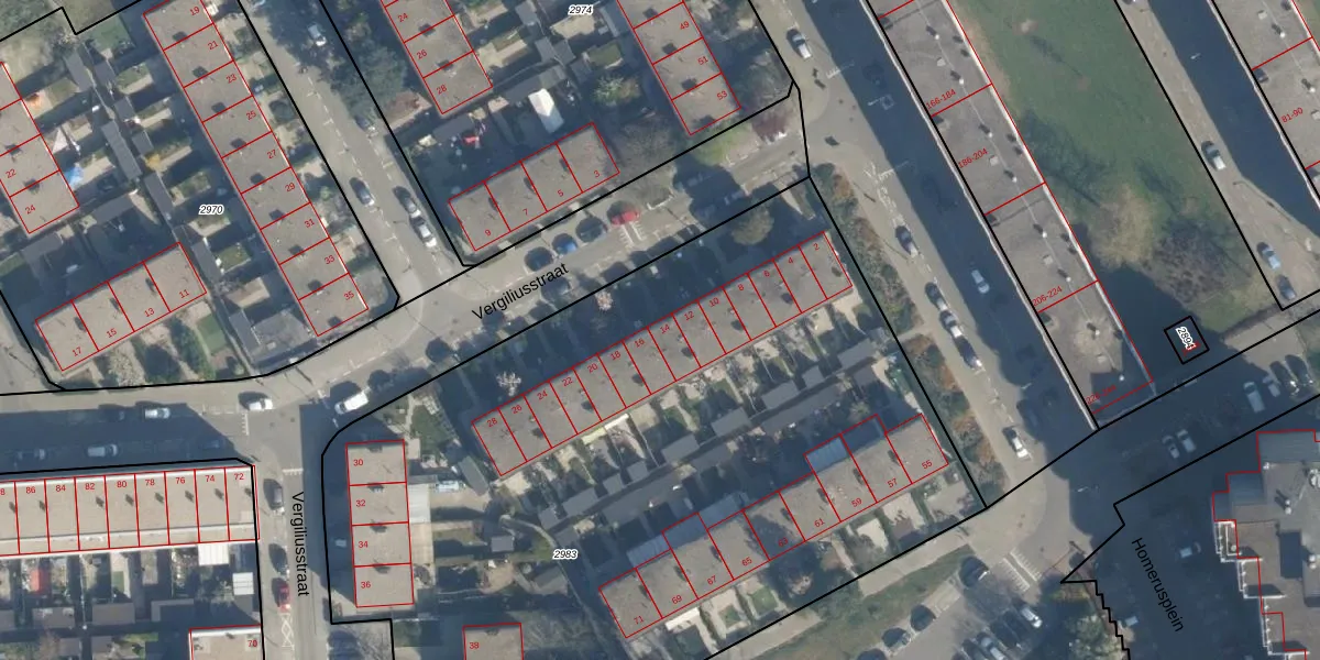 Het perceel waarop Vergiliusstraat 14 staat heeft een oppervlakte van 5448 m². Dit is een zeer groot perceel. De perceeloppervlakte wordt geregistreerd door het Kadaster. Gedetailleerde informatie over de maten van dit perceel kunt u vinden in het rapport Kadastrale kaart met maatvoering van Vergiliusstraat 14.