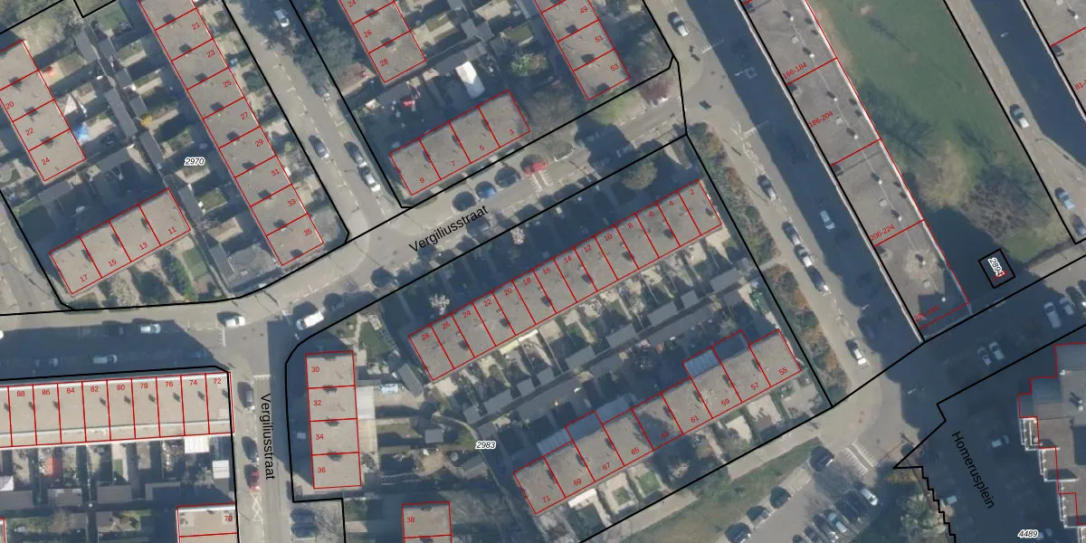 Vergiliusstraat 16 is gelegen op kadastraal perceel ISM01C2983. Deze kadastrale aanduiding is uniek en wordt gebruikt door het Kadaster om eigendomsrechten en andere zakelijke rechten vast te leggen. Het perceel maakt onderdeel uit van de kadastrale gemeente IJsselmonde.