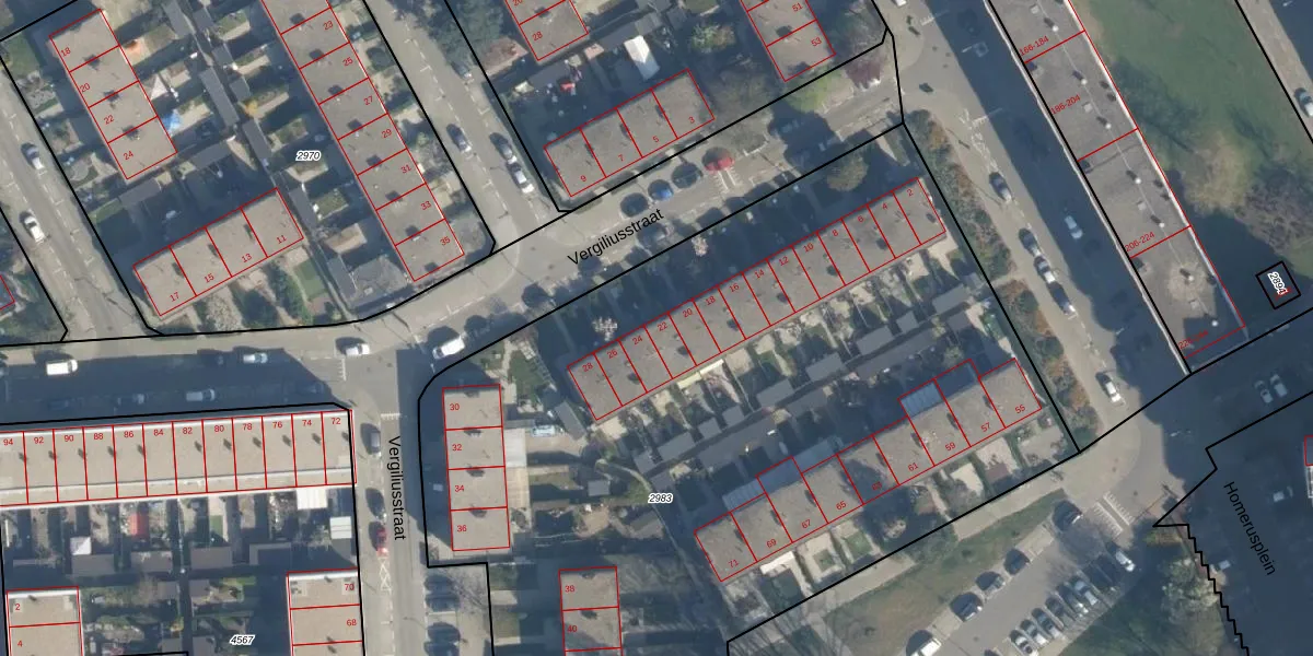 Het perceel waarop Vergiliusstraat 22 staat heeft een oppervlakte van 5448 m². Dit is een zeer groot perceel. De perceeloppervlakte wordt geregistreerd door het Kadaster. Gedetailleerde informatie over de maten van dit perceel kunt u vinden in het rapport Kadastrale kaart met maatvoering van Vergiliusstraat 22.