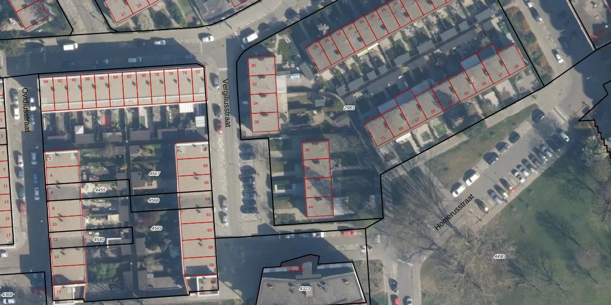 Het perceel waarop Vergiliusstraat 38 staat heeft een oppervlakte van 5448 m². Dit is een zeer groot perceel. De perceeloppervlakte wordt geregistreerd door het Kadaster. Gedetailleerde informatie over de maten van dit perceel kunt u vinden in het rapport Kadastrale kaart met maatvoering van Vergiliusstraat 38.