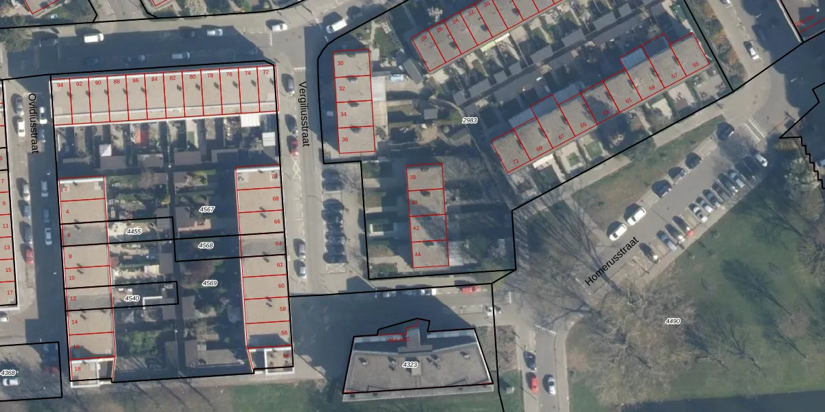 Het perceel waarop Vergiliusstraat 40 staat heeft een oppervlakte van 5448 m². Dit is een zeer groot perceel. De perceeloppervlakte wordt geregistreerd door het Kadaster. Gedetailleerde informatie over de maten van dit perceel kunt u vinden in het rapport Kadastrale kaart met maatvoering van Vergiliusstraat 40.