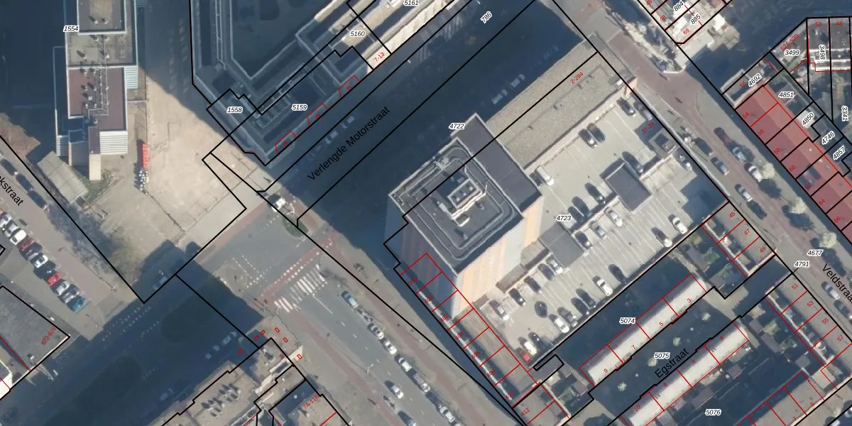Verlengde Motorstraat 72 is gelegen op kadastraal perceel CLS00F4723. Deze kadastrale aanduiding is uniek en wordt gebruikt door het Kadaster om eigendomsrechten en andere zakelijke rechten vast te leggen. Het perceel maakt onderdeel uit van de kadastrale gemeente Charlois.