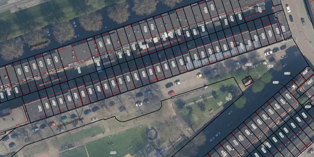 Het perceel waarop Verschoorstraat 37-C staat heeft een oppervlakte van 90 m². Dit is een klein perceel. De perceeloppervlakte wordt geregistreerd door het Kadaster. Gedetailleerde informatie over de maten van dit perceel kunt u vinden in het rapport Kadastrale kaart met maatvoering van Verschoorstraat 37-C.