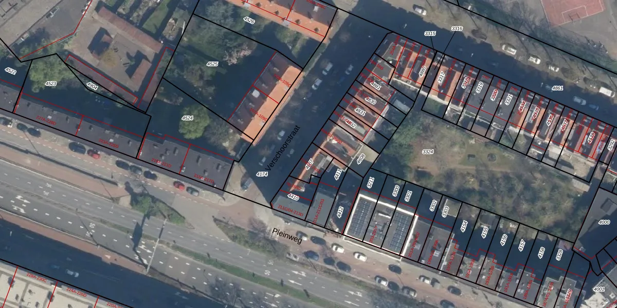 Verschoorstraat 72-A-02 is gelegen op kadastraal perceel CLS00E4607. Deze kadastrale aanduiding is uniek en wordt gebruikt door het Kadaster om eigendomsrechten en andere zakelijke rechten vast te leggen. Het perceel maakt onderdeel uit van de kadastrale gemeente Charlois.