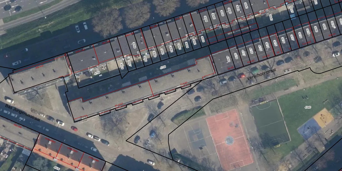 Het perceel waarop Verschoorstraat 79 staat heeft een oppervlakte van 2161 m². Dit is een zeer groot perceel. De perceeloppervlakte wordt geregistreerd door het Kadaster. Gedetailleerde informatie over de maten van dit perceel kunt u vinden in het rapport Kadastrale kaart met maatvoering van Verschoorstraat 79.