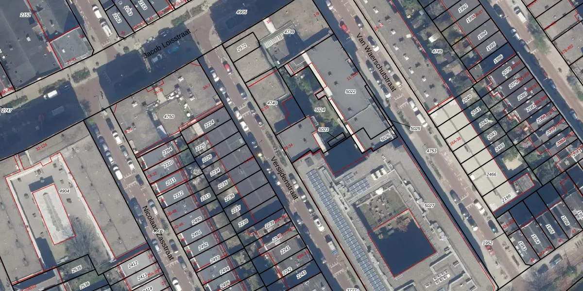 Het adres is gelegen op perceel 5024 in de sectie S en de kadastrale gemeente Rotterdam. De kadastrale aanduiding is aldus RTD06-S-5024. Het perceel is kleiner dan gemiddeld in Rotterdam. Het perceel is 421 m² groot, terwijl het gemiddelde ligt op 692,84 m². Het grootste perceel in de kadastrale gemeente is 4,7 ha. Het kleinste perceel heeft een oppervlakte van 0 m². Er zijn 8 adressen aanwezig op het perceel. In de Basisregistratie Kadaster (BRK) werden de grenzen van het perceel geregistreerd op 13-02-2003.