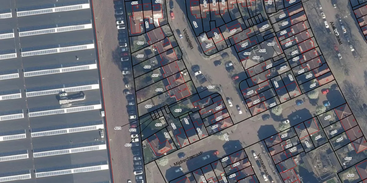 Vestaplein 13-B is gelegen op kadastraal perceel CLS00A4169. Deze kadastrale aanduiding is uniek en wordt gebruikt door het Kadaster om eigendomsrechten en andere zakelijke rechten vast te leggen. Het perceel maakt onderdeel uit van de kadastrale gemeente Charlois.
