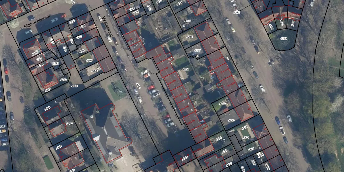 Het perceel waarop Vestastraat 16-B staat heeft een oppervlakte van 2460 m². Dit is een zeer groot perceel. De perceeloppervlakte wordt geregistreerd door het Kadaster. Gedetailleerde informatie over de maten van dit perceel kunt u vinden in het rapport Kadastrale kaart met maatvoering van Vestastraat 16-B.