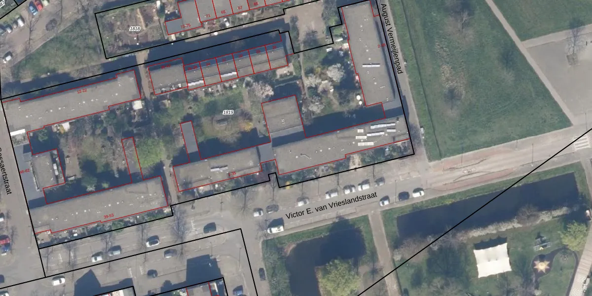 Het perceel waarop Victor E. van Vrieslandstraat 13 staat heeft een oppervlakte van 6565 m². Dit is een zeer groot perceel. De perceeloppervlakte wordt geregistreerd door het Kadaster. Gedetailleerde informatie over de maten van dit perceel kunt u vinden in het rapport Kadastrale kaart met maatvoering van Victor E. van Vrieslandstraat 13.