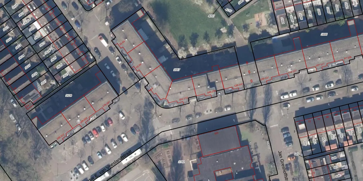 Victor E. van Vrieslandstraat 167 is gelegen op kadastraal perceel RTD13BA1657. Deze kadastrale aanduiding is uniek en wordt gebruikt door het Kadaster om eigendomsrechten en andere zakelijke rechten vast te leggen. Het perceel maakt onderdeel uit van de kadastrale gemeente Rotterdam.