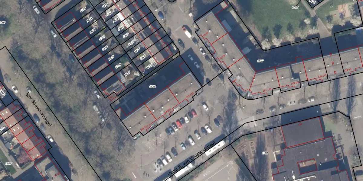 Victor E. van Vrieslandstraat 183 is gelegen op kadastraal perceel RTD13BA1628. Deze kadastrale aanduiding is uniek en wordt gebruikt door het Kadaster om eigendomsrechten en andere zakelijke rechten vast te leggen. Het perceel maakt onderdeel uit van de kadastrale gemeente Rotterdam.
