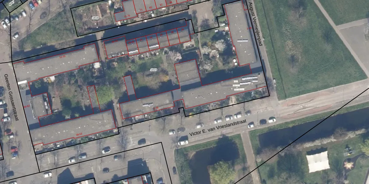 Het perceel waarop Victor E. van Vrieslandstraat 23 staat heeft een oppervlakte van 6565 m². Dit is een zeer groot perceel. De perceeloppervlakte wordt geregistreerd door het Kadaster. Gedetailleerde informatie over de maten van dit perceel kunt u vinden in het rapport Kadastrale kaart met maatvoering van Victor E. van Vrieslandstraat 23.