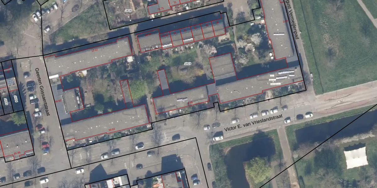 Het perceel waarop Victor E. van Vrieslandstraat 29 staat heeft een oppervlakte van 6565 m². Dit is een zeer groot perceel. De perceeloppervlakte wordt geregistreerd door het Kadaster. Gedetailleerde informatie over de maten van dit perceel kunt u vinden in het rapport Kadastrale kaart met maatvoering van Victor E. van Vrieslandstraat 29.