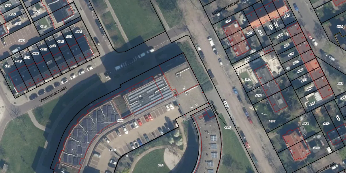 Victorieuxstraat 38 is gelegen op kadastraal perceel CLS00A4594. Deze kadastrale aanduiding is uniek en wordt gebruikt door het Kadaster om eigendomsrechten en andere zakelijke rechten vast te leggen. Het perceel maakt onderdeel uit van de kadastrale gemeente Charlois.