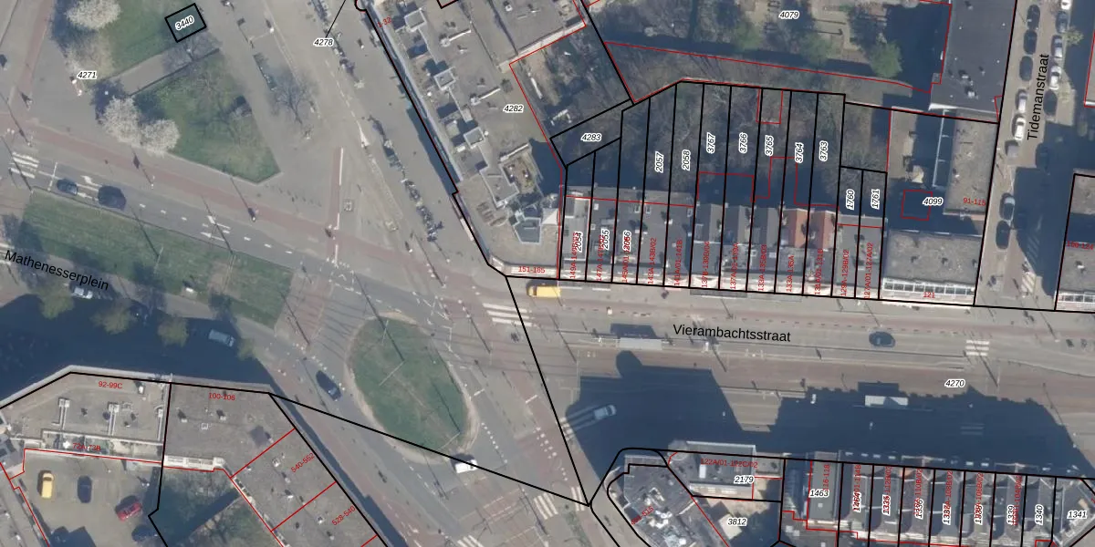 Het perceel waarop Vierambachtsstraat 179 staat heeft een oppervlakte van 1563 m². Dit is een zeer groot perceel. De perceeloppervlakte wordt geregistreerd door het Kadaster. Gedetailleerde informatie over de maten van dit perceel kunt u vinden in het rapport Kadastrale kaart met maatvoering van Vierambachtsstraat 179.