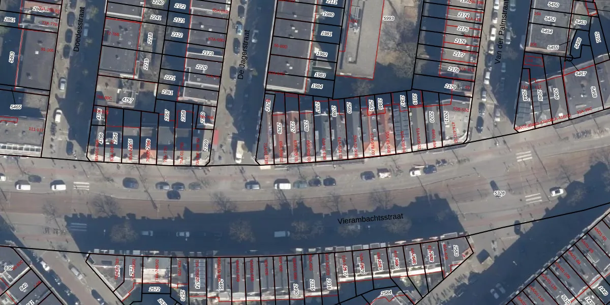 Vierambachtsstraat 65-A is gelegen op kadastraal perceel DHV00C2328. Deze kadastrale aanduiding is uniek en wordt gebruikt door het Kadaster om eigendomsrechten en andere zakelijke rechten vast te leggen. Het perceel maakt onderdeel uit van de kadastrale gemeente Delfshaven.