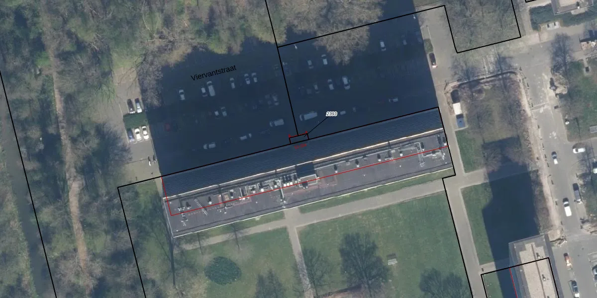 Het perceel waarop Viervantstraat 210 staat heeft een oppervlakte van 1,8 ha. Dit is een zeer groot perceel. De perceeloppervlakte wordt geregistreerd door het Kadaster. Gedetailleerde informatie over de maten van dit perceel kunt u vinden in het rapport Kadastrale kaart met maatvoering van Viervantstraat 210.