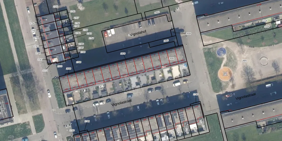 Vignolastraat 111 is gelegen op kadastraal perceel KLG00K2695. Deze kadastrale aanduiding is uniek en wordt gebruikt door het Kadaster om eigendomsrechten en andere zakelijke rechten vast te leggen. Het perceel maakt onderdeel uit van de kadastrale gemeente Kralingen.