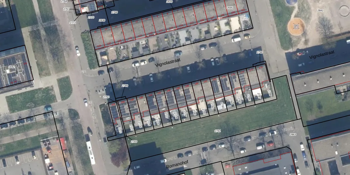 Vignolastraat 188 is gelegen op kadastraal perceel KLG00K2779. Deze kadastrale aanduiding is uniek en wordt gebruikt door het Kadaster om eigendomsrechten en andere zakelijke rechten vast te leggen. Het perceel maakt onderdeel uit van de kadastrale gemeente Kralingen.