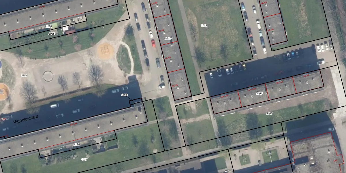 Het perceel waarop Vignolastraat 68 staat heeft een oppervlakte van 674 m². Dit is een groot perceel. De perceeloppervlakte wordt geregistreerd door het Kadaster. Gedetailleerde informatie over de maten van dit perceel kunt u vinden in het rapport Kadastrale kaart met maatvoering van Vignolastraat 68.