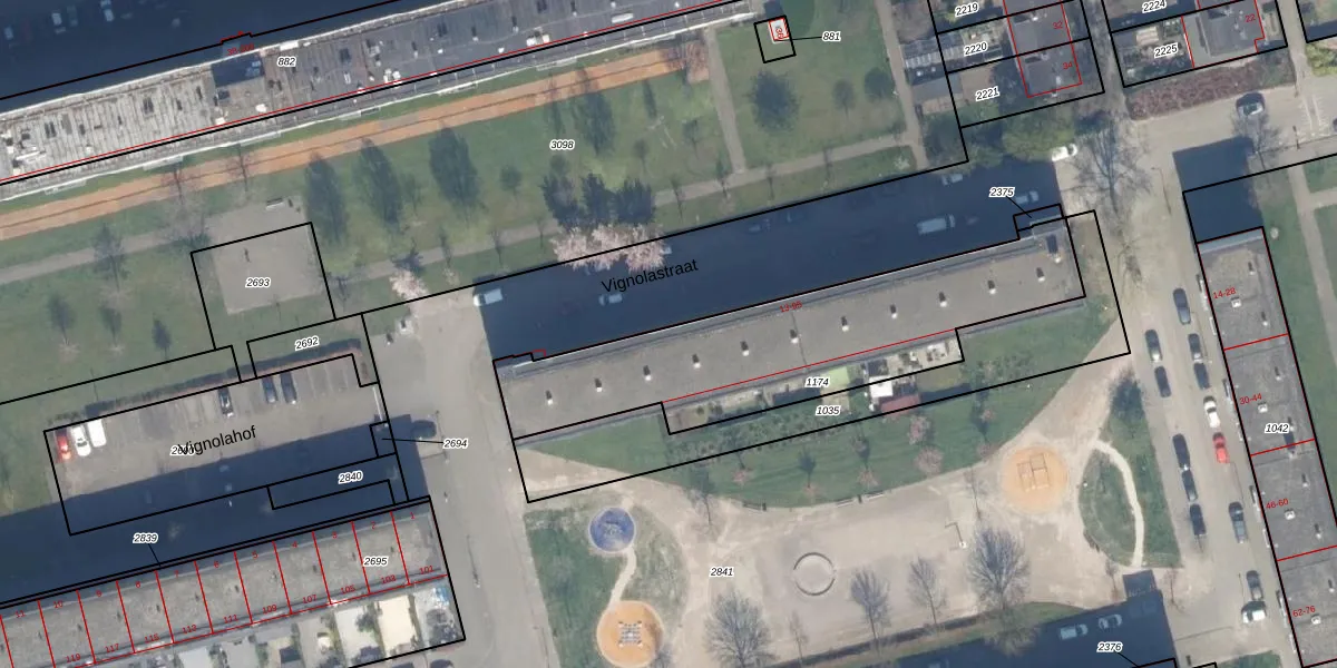 Vignolastraat 95 is gelegen op kadastraal perceel KLG00K1174. Deze kadastrale aanduiding is uniek en wordt gebruikt door het Kadaster om eigendomsrechten en andere zakelijke rechten vast te leggen. Het perceel maakt onderdeel uit van de kadastrale gemeente Kralingen.