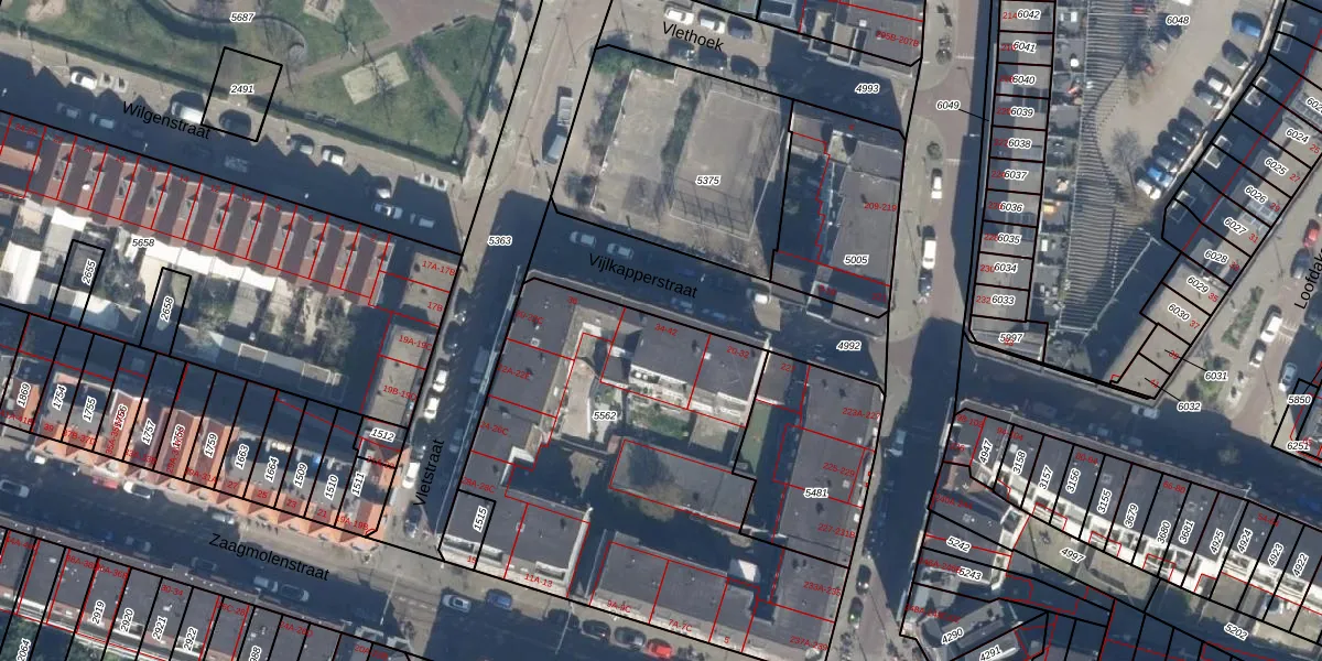 Vijlkapperstraat 34 is gelegen op kadastraal perceel RTD07W5562. Deze kadastrale aanduiding is uniek en wordt gebruikt door het Kadaster om eigendomsrechten en andere zakelijke rechten vast te leggen. Het perceel maakt onderdeel uit van de kadastrale gemeente Rotterdam.
