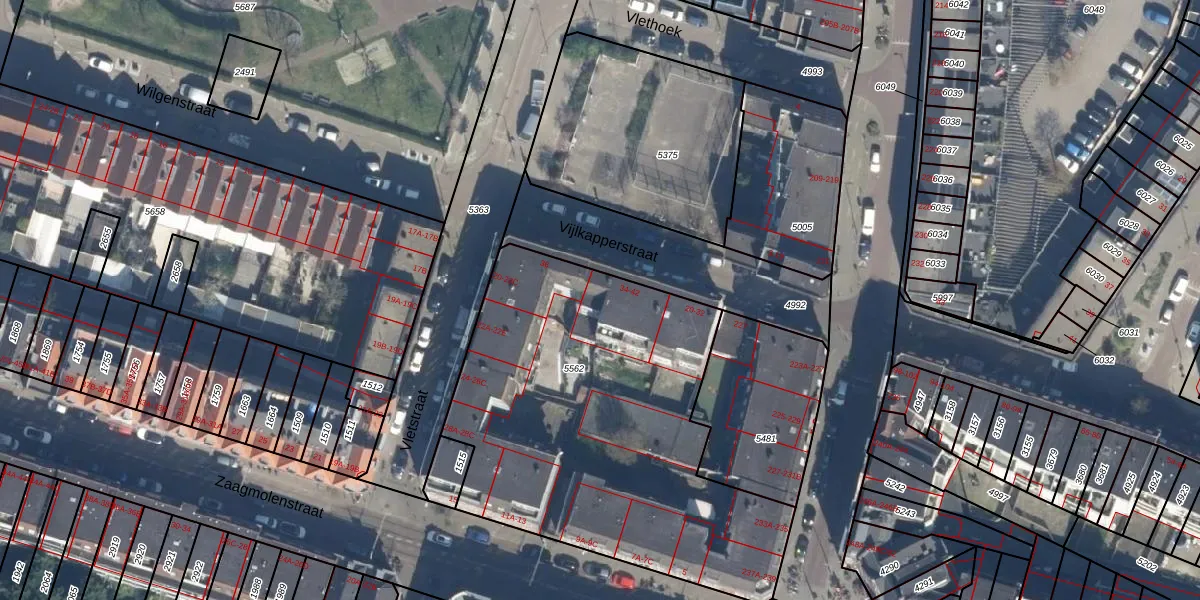 Vijlkapperstraat 38 is gelegen op kadastraal perceel RTD07W5562. Deze kadastrale aanduiding is uniek en wordt gebruikt door het Kadaster om eigendomsrechten en andere zakelijke rechten vast te leggen. Het perceel maakt onderdeel uit van de kadastrale gemeente Rotterdam.