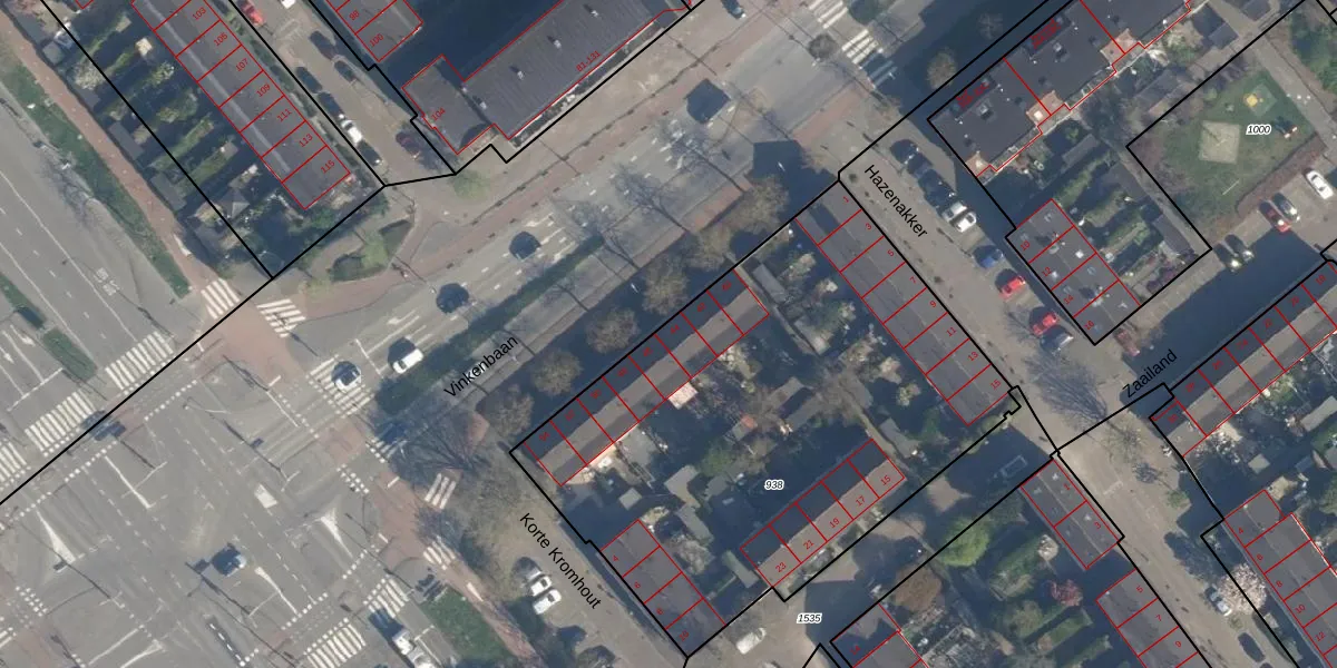 Vinkenbaan 44 is gelegen op kadastraal perceel CLS00K938. Deze kadastrale aanduiding is uniek en wordt gebruikt door het Kadaster om eigendomsrechten en andere zakelijke rechten vast te leggen. Het perceel maakt onderdeel uit van de kadastrale gemeente Charlois.
