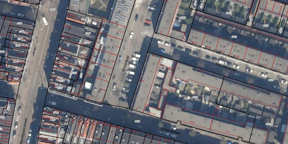 Vinkenlust 18 is gelegen op kadastraal perceel RTD07W5624. Deze kadastrale aanduiding is uniek en wordt gebruikt door het Kadaster om eigendomsrechten en andere zakelijke rechten vast te leggen. Het perceel maakt onderdeel uit van de kadastrale gemeente Rotterdam.