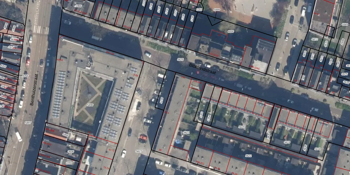 Het adres is gelegen op perceel 5621 in de sectie W en de kadastrale gemeente Rotterdam. De kadastrale aanduiding is aldus RTD07-W-5621. De oppervlakte van het perceel is 980 m². Dat is groter dan gemiddeld in Rotterdam, waar de gemiddelde perceeloppervlakte op 506,86 m² ligt. Het kleinste perceel in de kadastrale gemeente is 0 m² groot. De grootste perceeloppervlakte is 10,8 ha. Er zijn 18 adressen aanwezig op het perceel. De huidige grenzen van het perceel zijn digitaal in de Basisregistratie Kadaster (BRK) geregistreerd op 06-12-2002.