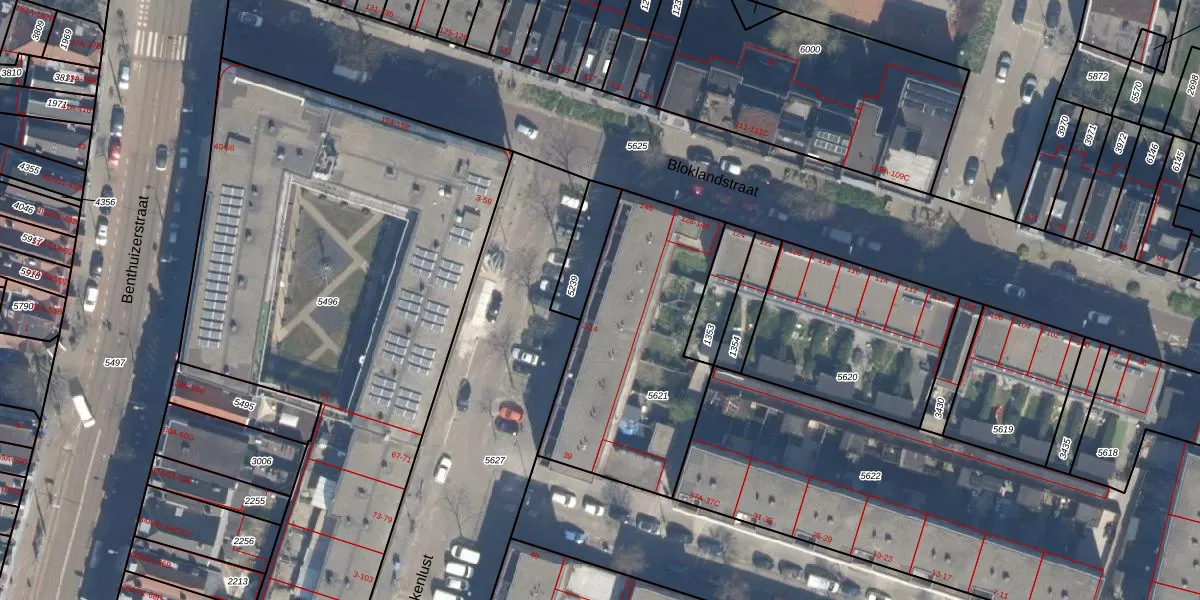 Het adres is gelegen op perceel 5621 in de sectie W en de kadastrale gemeente Rotterdam. De kadastrale aanduiding is aldus RTD07-W-5621. De oppervlakte van het perceel is 980 m². Dat is groter dan gemiddeld in Rotterdam, waar de gemiddelde perceeloppervlakte op 506,86 m² ligt. De grootste perceeloppervlakte in de kadastrale gemeente is 10,8 ha. De kleinste oppervlakte bedraagt 0 m². Op het perceel zijn 18 adressen aanwezig. De huidige grenzen van het perceel zijn digitaal in de Basisregistratie Kadaster (BRK) geregistreerd op 06-12-2002.