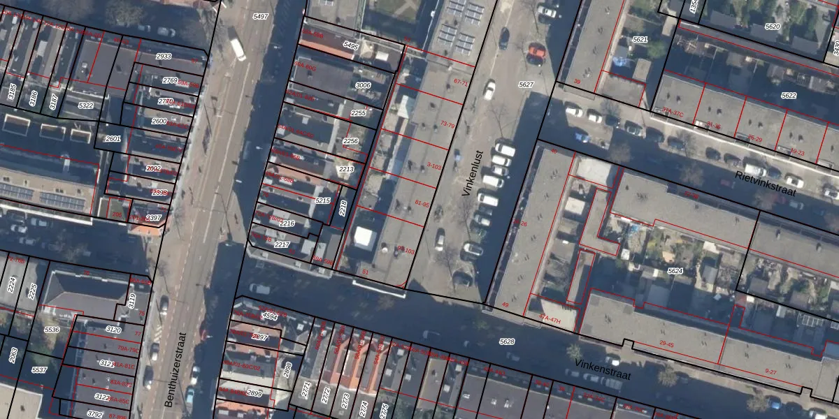 Vinkenlust 93 is gelegen op kadastraal perceel RTD07W5496. Deze kadastrale aanduiding is uniek en wordt gebruikt door het Kadaster om eigendomsrechten en andere zakelijke rechten vast te leggen. Het perceel maakt onderdeel uit van de kadastrale gemeente Rotterdam.