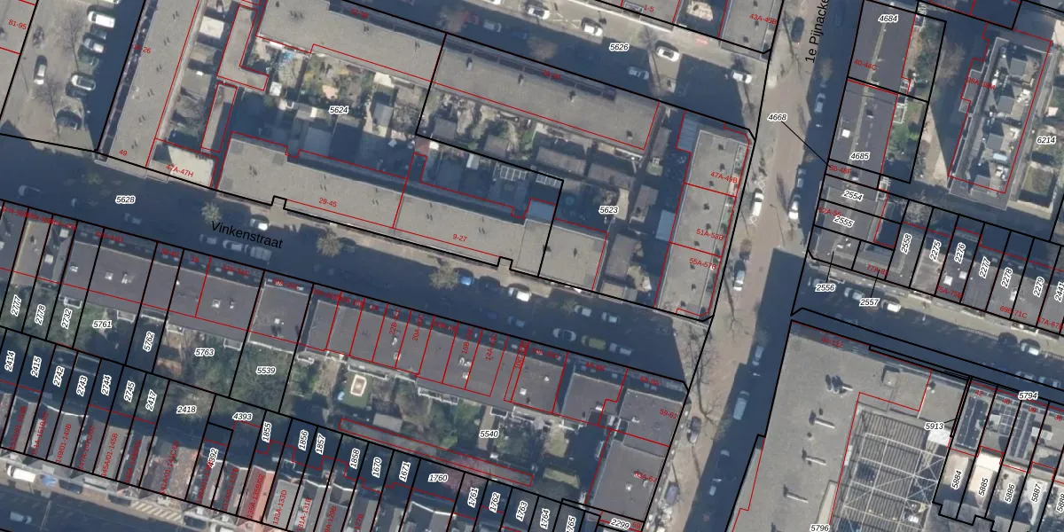 Vinkenstraat 13 is gelegen op kadastraal perceel RTD07W5624. Deze kadastrale aanduiding is uniek en wordt gebruikt door het Kadaster om eigendomsrechten en andere zakelijke rechten vast te leggen. Het perceel maakt onderdeel uit van de kadastrale gemeente Rotterdam.