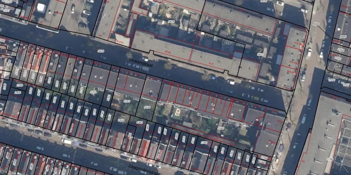 Vinkenstraat 26-B is gelegen op kadastraal perceel RTD07W5540. Deze kadastrale aanduiding is uniek en wordt gebruikt door het Kadaster om eigendomsrechten en andere zakelijke rechten vast te leggen. Het perceel maakt onderdeel uit van de kadastrale gemeente Rotterdam.