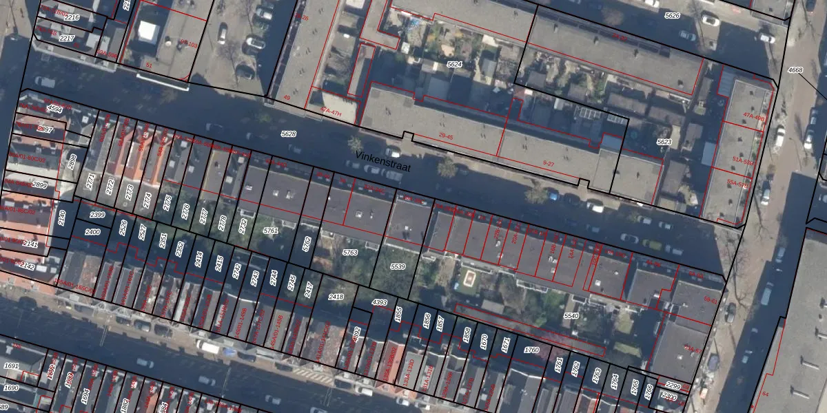 Vinkenstraat 30-C is gelegen op kadastraal perceel RTD07W5539. Deze kadastrale aanduiding is uniek en wordt gebruikt door het Kadaster om eigendomsrechten en andere zakelijke rechten vast te leggen. Het perceel maakt onderdeel uit van de kadastrale gemeente Rotterdam.