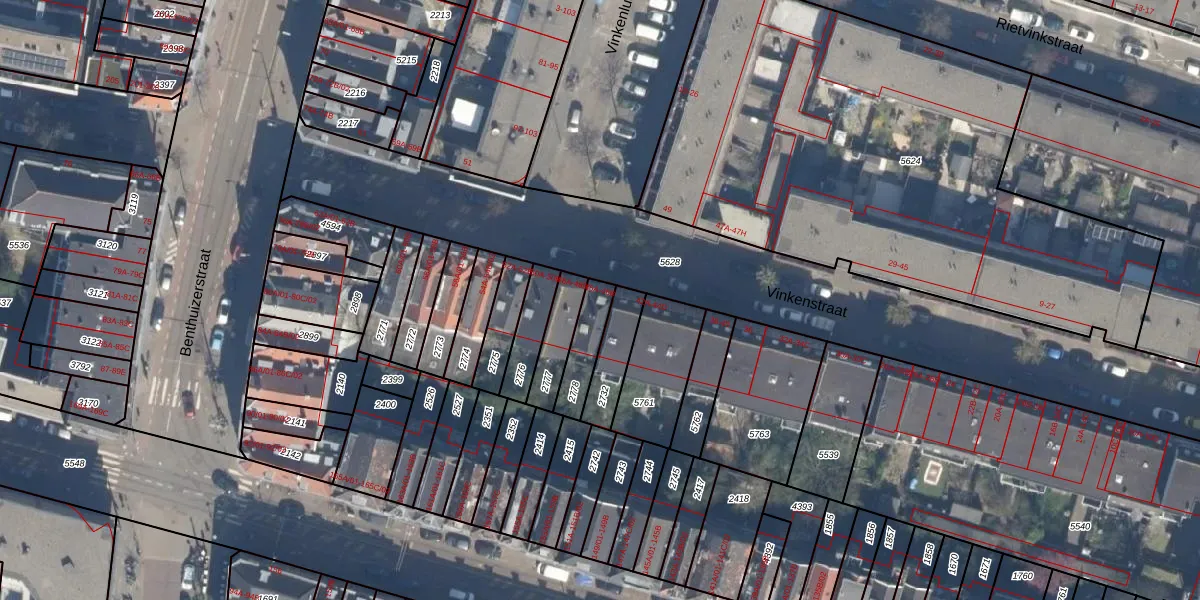 Het perceel waarop Vinkenstraat 46-B staat heeft een oppervlakte van 112 m². Dit is een middelgroot perceel. De perceeloppervlakte wordt geregistreerd door het Kadaster. Gedetailleerde informatie over de maten van dit perceel kunt u vinden in het rapport Kadastrale kaart met maatvoering van Vinkenstraat 46-B.