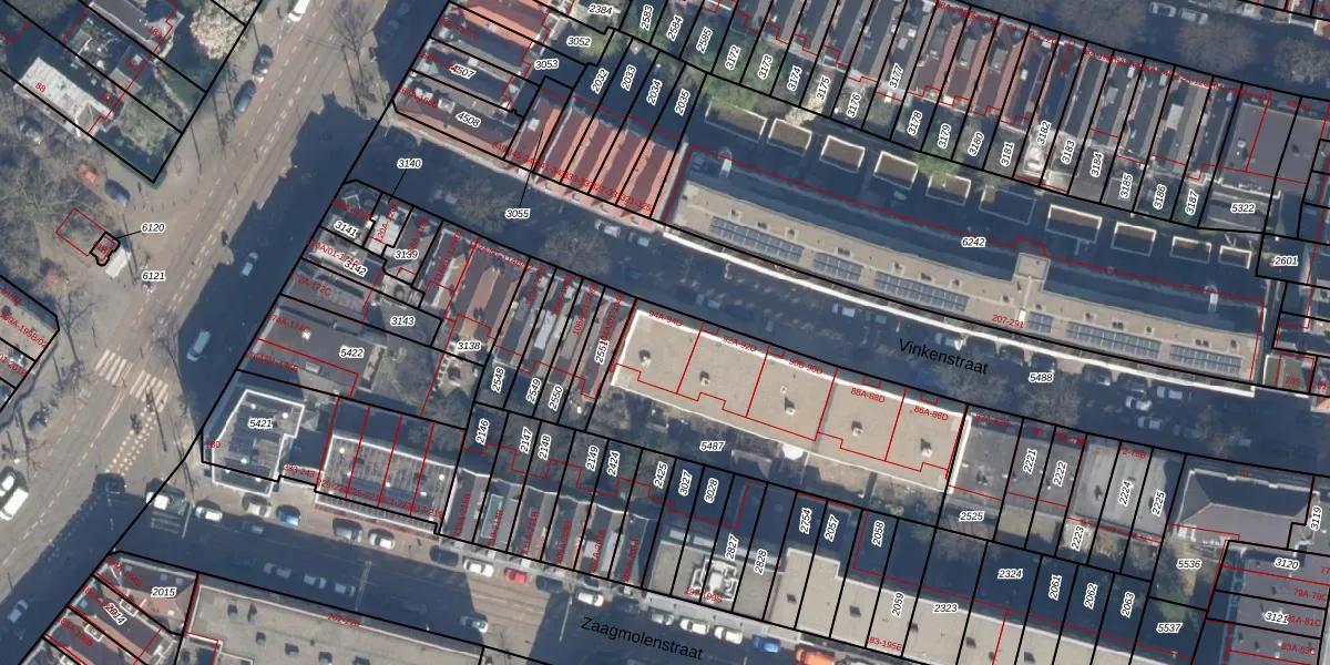 Vinkenstraat 94-A is gelegen op kadastraal perceel RTD07W5487. Deze kadastrale aanduiding is uniek en wordt gebruikt door het Kadaster om eigendomsrechten en andere zakelijke rechten vast te leggen. Het perceel maakt onderdeel uit van de kadastrale gemeente Rotterdam.