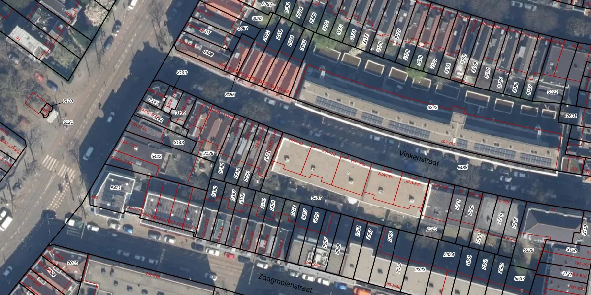 Vinkenstraat 94-D is gelegen op kadastraal perceel RTD07W5487. Deze kadastrale aanduiding is uniek en wordt gebruikt door het Kadaster om eigendomsrechten en andere zakelijke rechten vast te leggen. Het perceel maakt onderdeel uit van de kadastrale gemeente Rotterdam.