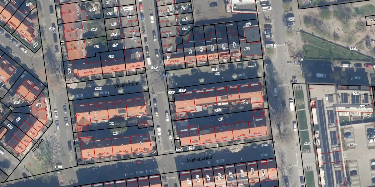 Het perceel waarop Violenstraat 13-B staat heeft een oppervlakte van 853 m². Dit is een groot perceel. De perceeloppervlakte wordt geregistreerd door het Kadaster. Gedetailleerde informatie over de maten van dit perceel kunt u vinden in het rapport Kadastrale kaart met maatvoering van Violenstraat 13-B.