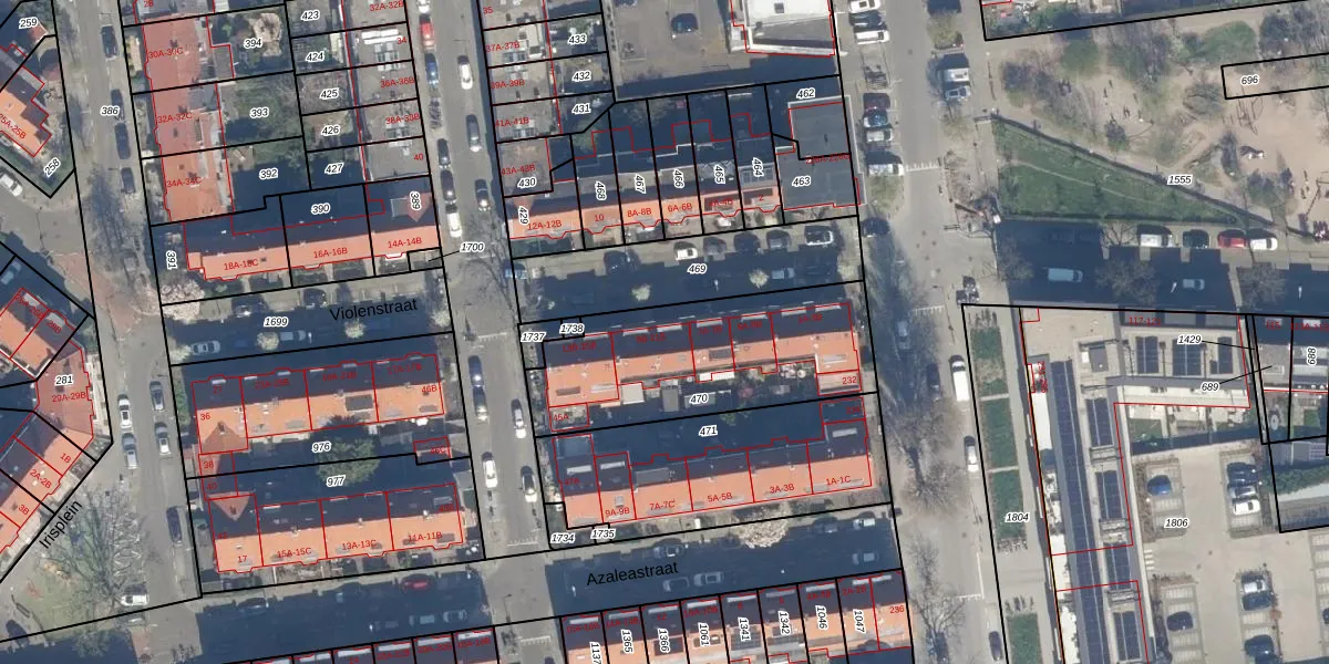 Het perceel waarop Violenstraat 9-B staat heeft een oppervlakte van 853 m². Dit is een groot perceel. De perceeloppervlakte wordt geregistreerd door het Kadaster. Gedetailleerde informatie over de maten van dit perceel kunt u vinden in het rapport Kadastrale kaart met maatvoering van Violenstraat 9-B.